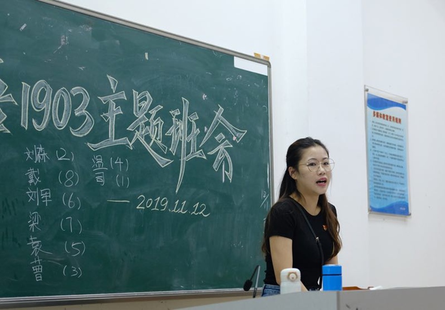 十大网投平台排行2019级举办了以“文明、修养、形象”为主题的班会。2019级英语、德语专业辅导员伍思颖主持,班会以“文明、修养、形象”为主线,延伸出衣食住行+学习五大板块。从服装符合场合到早餐不进课室,从制定宿舍十大公约到走路不玩手机,从教育先行到六律建设等等。班会还采用问答与进行猜有关文明修养的成语、分享熟悉的班级里的同学做过的符合大学生文明修养的事情的小游戏的形式,与同学们进行了有意义的互动,既加深同学间的了解,又起到树立了榜样作用。