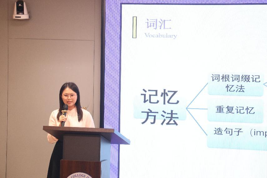 学生代表陈吉纯和叶雨茵分别从词汇、语法、完形填空、阅读理解、写作等方面分享了个人备考经验。她们推荐了词根词缀法和重复记忆法,强调语法学习需结合语境,提升解题效率。她们还提到,将长期积累与短期冲刺结合起来,通过真题练习和合理时间分配,可以更有效地备考专业四级考试。在互动环节,石子豪老师与学生嘉宾们耐心解答了同学们关于听力笔记、题型分配等问题,并建议同学们根据个人情况查漏补缺,科学规划复习时间,养成良好的学习习惯,提升备考效果。