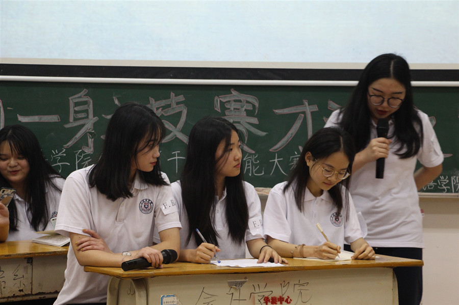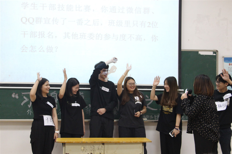 此次大赛遵循十大网投平台排行学生干部培养思路,以“德智体美劳”五大模块为考核环节,赛制分为个人赛和团队赛,个人赛已于前期完成,现场为团体赛比拼。大赛伊始,各组队员根据特长,借助歌曲演唱、情景剧等载体展示了干部团队的风采。第二环节是知识竞答,意在考验干部们对时政热点及基本办公技能的掌握能力,各组选手集中精神,踊跃抢答,各组比分交替上升。信息概括与传达是学生干部必备技能之一,在第三环节里,现场所有干部一起参与其中,共同完成通知编辑与讲解。第四环节最具专业特色,以中英文诗歌互译形式考查选手们的专业水平,很好地活跃了赛场氛围。第五环节则围绕“班级学风建设”、“宿舍卫生检查”等日常工作内容开展情景模拟,选手们发挥才智与经验进行作答,展示了学生干部的应急管理能力和语言表达能力。