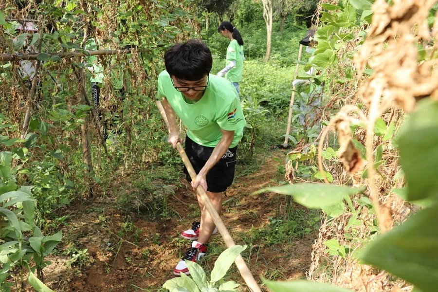 初到农田,农民阿姨向队员们讲述了负责土地的种植概况以及除草技巧,大大增长了队员们对农务的了解。随后,队员们便开启了农田之旅。队员们手拿锄头,低着头,弓着背,弯着腰,在田地里一丝不苟的劳作着,虽汗流满面,衣衫湿透,但依旧热情高涨,毫无怨言,有的只是欢声笑语。两小时后,队员们完成了除草工作,看着自己的劳动成果,队员们露出了满意的笑容。田间劳作,队员们深刻感受到了农作的不易以及农民的辛苦,懂得了只有付出辛勤的劳动,才有丰收的喜悦。