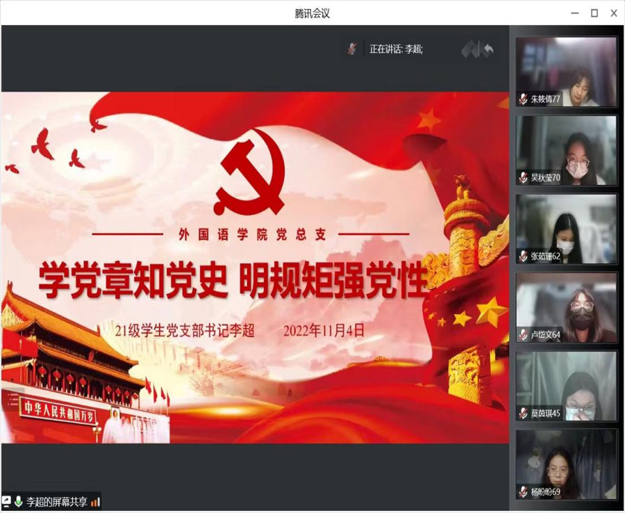 为进一步加强入党积极分子的培养和教育,十大网投平台排行分党校于11月4日晚七点在腾讯会议开展2022年第二期入党积极分子培训班第三课。本次课程由21级学生党支部书记李超授课,本期入党积极分子培训班全体学员参加学习。