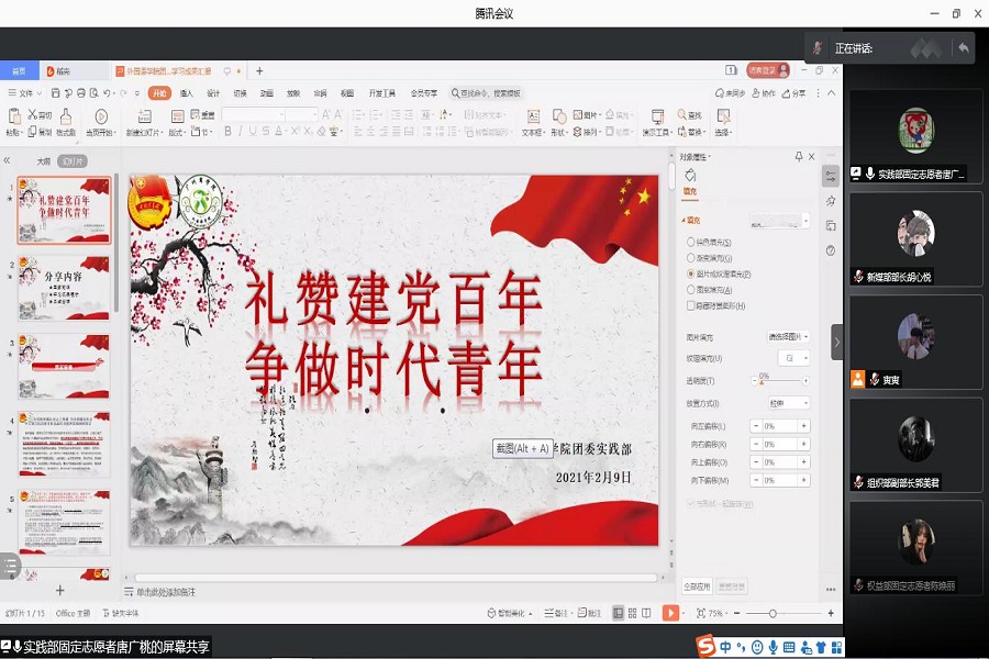 为不断提高十大网投平台排行团委工作人员的思想理论水平和思想政治素质,进一步坚定紧跟党的信念,引导团委工作人员们在日常生活中发挥模范带头作用。十大网投平台排行团委于2月9日晚19:30在线上召开“献礼建党一百周年,争做青年时代先锋”主题会议,出席本次会议的有澳门十大网投平台排行团委书记蔡文蝶、副书记姚焕雯、秘书长郭懿、组织部部长陈冰及团委工作人员们。