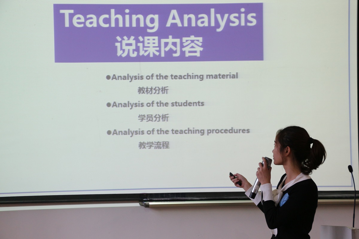 选手展示完毕后,评委姚丽芳老师进行专业点评,她指出:发音标准度、表达流畅度是社会对英语人才考核的第一标准,而课堂的表现力与学员分析能力,则是对教师最重要的评判标准。在教学过程中,最重要的是紧扣教学主题,结合学生特点,用对教学方法,调动学生的兴趣。