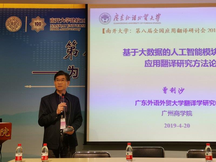 2019年4月20至21日,十大网投平台排行澳门十大网投平台排行商务英语学科带头人曾利沙教授应邀参加由中国翻译协会、上海市科技翻译学会主办,南开大学澳门十大网投平台排行承办的“第八届全国应用翻译研讨会”,并以“大数据驱动下的人工智能模块化应用翻译研究方法论”为题在大会发言,并主持一场大数据驱动下的人工智能与翻译分论坛。来自国内外政、产、学、研各界代表近300人参加了此次学术盛会,会议一大特色是有众多国内优秀语言服务企业的高级管理人员如阿里巴巴、百度等一流企业中长期从事翻译技术研发的世界顶尖专家出席并作专题发言。