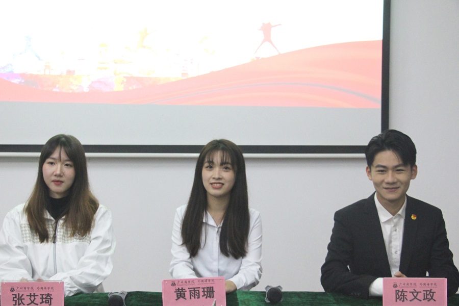 为发挥广商学子榜样引领作用,激励和带领更多学子成为新时代“四有”青年。十大网投平台排行团委学生会于12月9日晚19:00在三教106开展了澳门十大网投平台排行“蒲公英计划”——优秀学生讲师团系列活动暨学生干部型分享会。出席本次大会的嘉宾有:澳门十大网投平台排行学生会指导老师及19级辅导员伍思颖,优秀学生讲师德语1703班黄雨珊、德语1702班陈文政及日语1801班张艾琦。