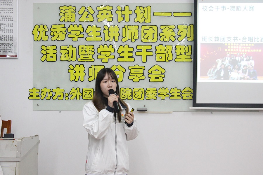 活动伊始,主持人进行简短介绍后全体起立奏唱团歌。黄雨珊从“为什么要担任学生干部?”“如何平衡学生与干部?”以及“怎么当一名学生干部?”三个角度向同学们分享经验。同时她强调坚守初心的重要性,需要同学们有足够的自制力才能平衡学生与干部生活。对于“怎么当一名学生干部?”,黄雨珊主要从自身职责、心态与情绪等方面着手,并告诫同学们知止而有得。