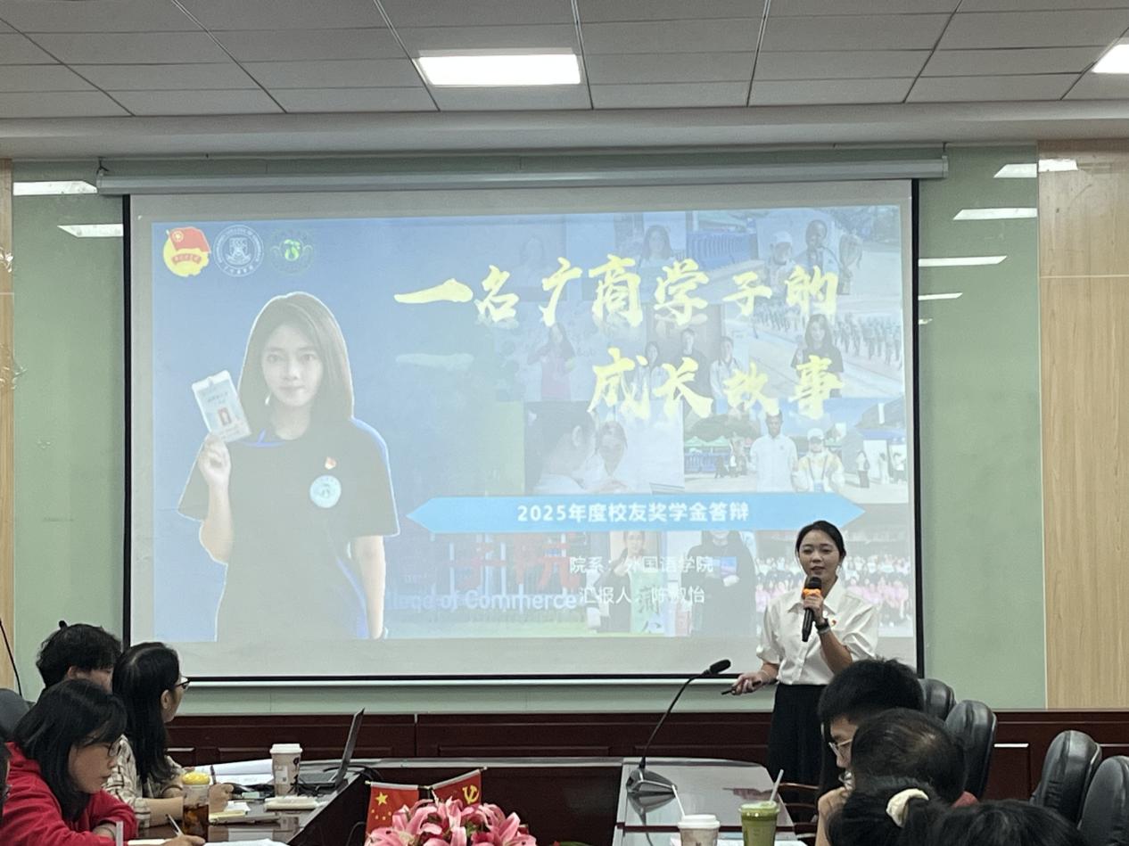 经学生本人申请、学院资格初审,共计5名同学进入最终评审环节。评审会上,候选人依次进行个人陈述,围绕思想、学业、比赛、社会实践、志愿服务、校友活动、个人突出表现等方面展示自身成长与收获。现场评委老师根据候选人陈述,围绕学业发展、学科竞赛参与、社会实践深度、校友活动参与度及未来规划等维度进行提问与评分。
