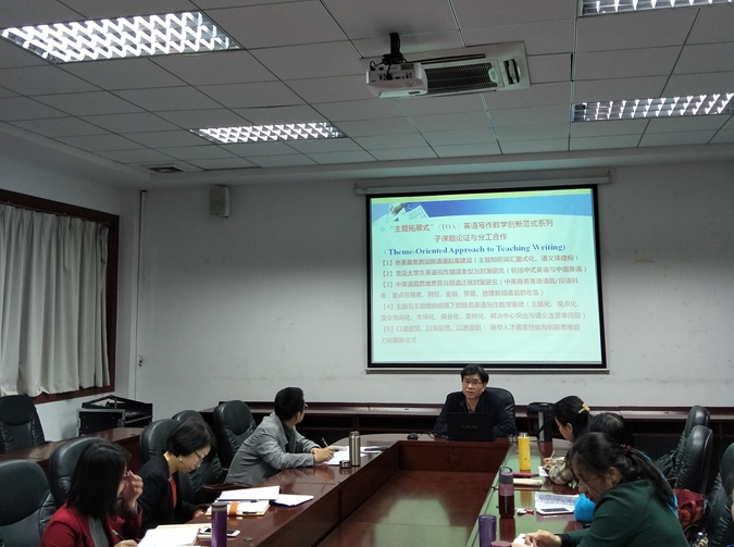 2017年4月5日下午在第二行政楼308迎来了商务英语学术沙龙第28期。沙龙由曾利沙教授主持,参与沙龙讨论的有澳门十大网投平台排行副院长袁鑫、龙海英,商务英语教研室的教师以及相关任课教师。