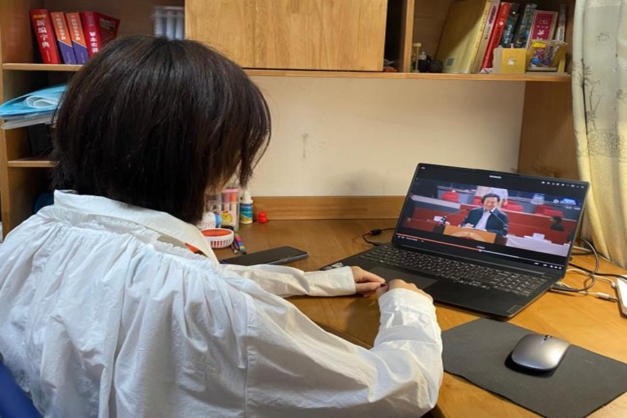 学生党员观看电影《我和我的祖国》