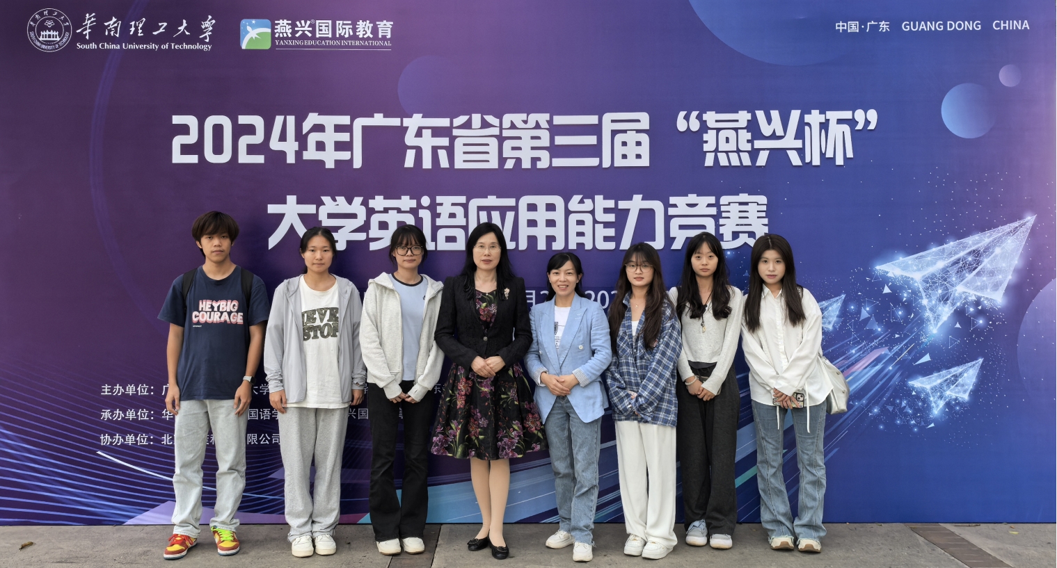 近日,2024年广东省第三届“燕兴杯”大学英语应用能力竞赛在华南理工大学圆满结束,本次竞赛由广东省本科高校大学英语课程教学指导委员会主办,华南理工大学和北京燕兴国际教育联合承办,旨在贯彻《高等学校课程思政建设指导纲要》和《大学英语教学指南》(2020版)精神,全面提升我省本科高校大学生的英语应用能力和跨文化交际能力,同时促进大学英语教学改革和教育质量提升。比赛内容涵盖了写作、阅读、口语等多项英语技能,对标《中国英语能力等级量表》,综合考查参赛学生的语言运用、跨文化交际、自主学习及综合素养能力。本次大赛共有来自72所本科高校的 44439 名同学参加了初赛选拔,139名选手参加了复赛。