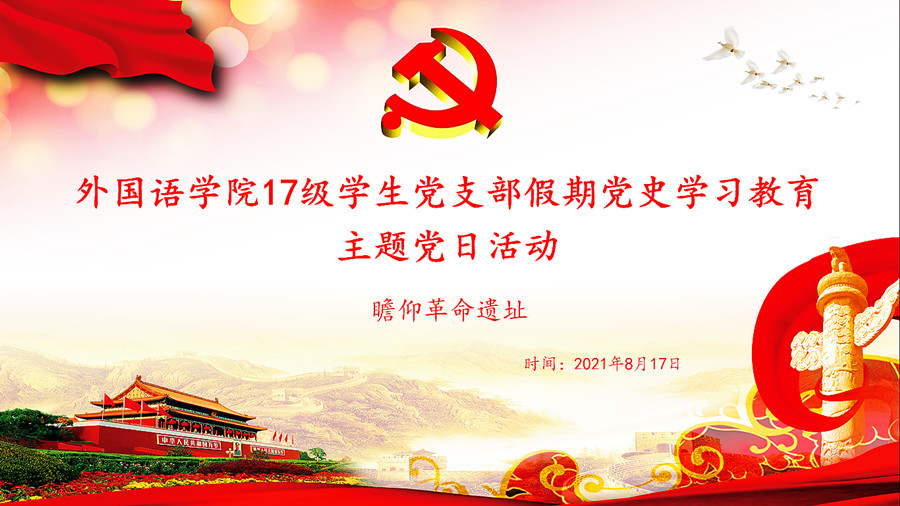 8月17日,澳门十大网投平台排行17级学生党支部结合学校党委关于暑假期间开展党史学习教育工作要求和疫情防控的实际需要,通过“线上分享会”+“线下瞻仰遗址”的工作方式,开展“瞻仰革命遗址 重温红色记忆”党史学习教育主题党日活动,教育引导党员干部弘扬革命先烈精神,传承红色基因,推动党史学习教育扎实深入开展,增强奋力谱写新时代学生党员追赶超越新篇章的责任感和使命感。