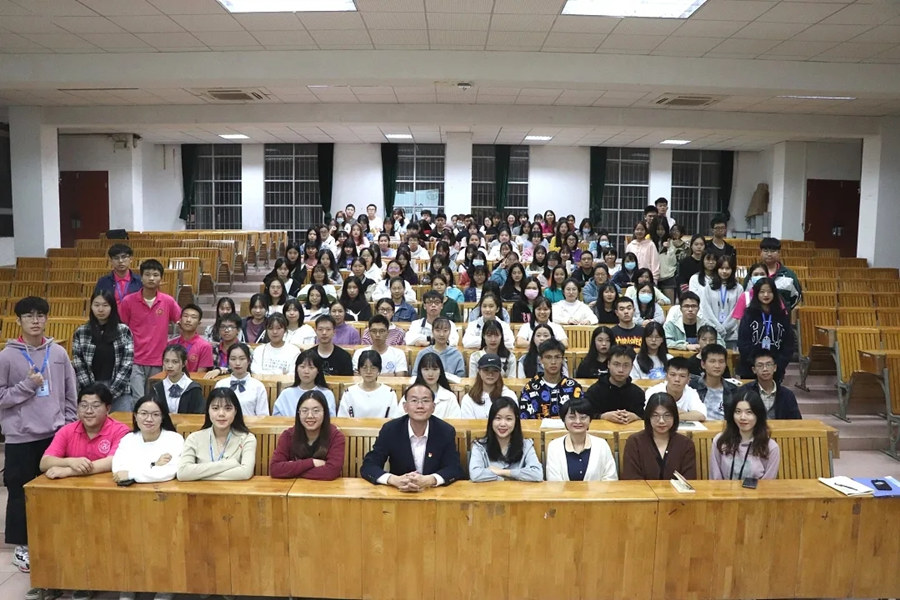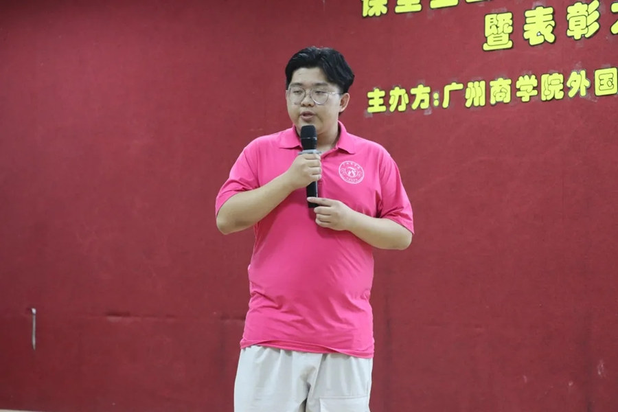 随后进行颁奖环节,主席谭沛洋宣读表彰决定,19级的同学们携手共进,团结互助,凭借着集体的力量,获得了这份荣誉。紧接着进入宣誓环节,20级的同学们举起右拳,手握信念,心怀坚定,做出了郑重的承诺。