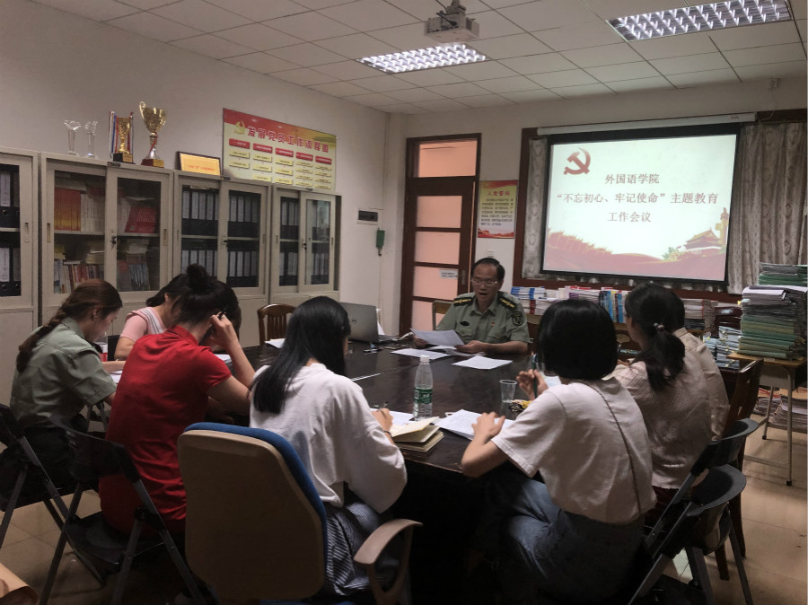 为响应省委教育工委教育系统“不忘初心、牢记使命”主题教育第二批学习工作部署和要求,为全力推进主题教育,9月23日,澳门十大网投平台排行党政联席会议在第二行政楼302举行,学院院长马蔚兰教授,副院长袁鑫,党总支书记徐超出席了会议。会议落实第一议题制度,共同学习了习近平在“不忘初心,牢记使命”主题教育工作会议上的重要讲话精神,研讨了校党委主题教育的总体要求,活动内容和工作要求,统筹推进《外国语学校“不忘初心,牢记使命”主题教育方案》各项工作。