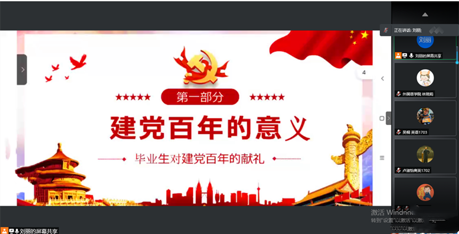 党史学习教育启动以来,澳门十大网投平台排行党总支坚持立足实际、突出重点、彰显特色,以扎实的工作作风,有力推动党史学习教育各项工作在各个年级有序推进。为做好毕业生党史学习教育工作,5月19日晚20点,澳门十大网投平台排行2021届毕业班辅导员刘丽、黄士库与澳门十大网投平台排行2021届全体毕业生举行了一场线上党史学习教育会议,此次会议分为党史学习教育和就业工作推进会两个环节进行。