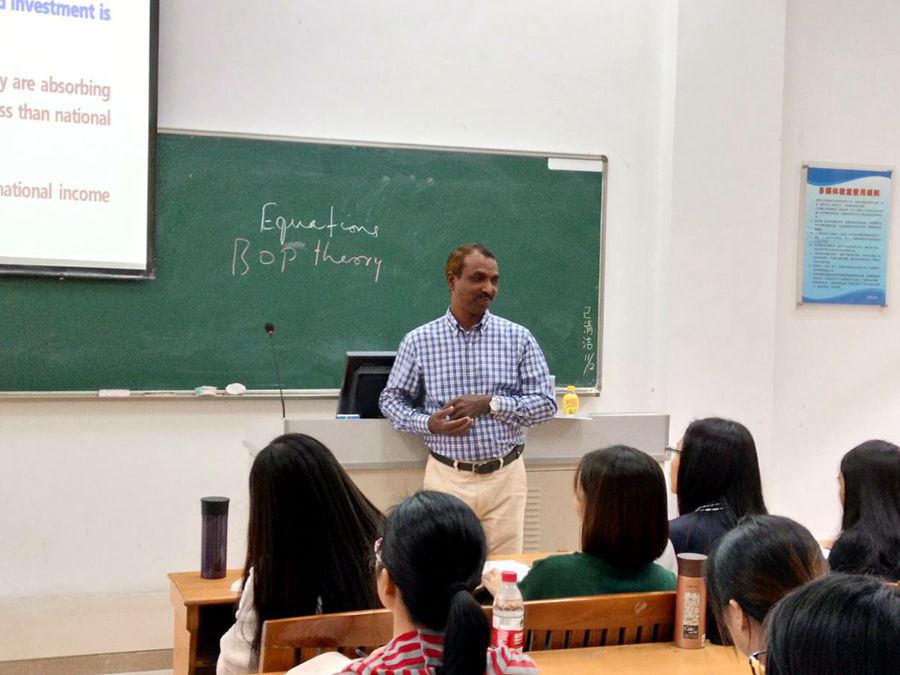 任课教师Everest Louis教态自然、精神饱满,全程走动到学生当中讲课;他声音洪亮,课件清晰,重点突出,讲授清楚。Louis对Absorption Approach、BOP Theory、National Income、Full Employment的定义、关系、公式都进行了讲解,学生们有效学习了金融基础理论知识。听课教师认真做好了笔记。