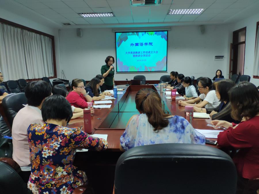 10月25日下午,澳门十大网投平台排行在第二行政楼308室举行了第1期大学英语教研工作坊。本次会议由大英一教研室主任李卓华主持,澳门十大网投平台排行院长马蔚兰,副院长龙海英及大学英语全体教师出席了沙龙研讨。