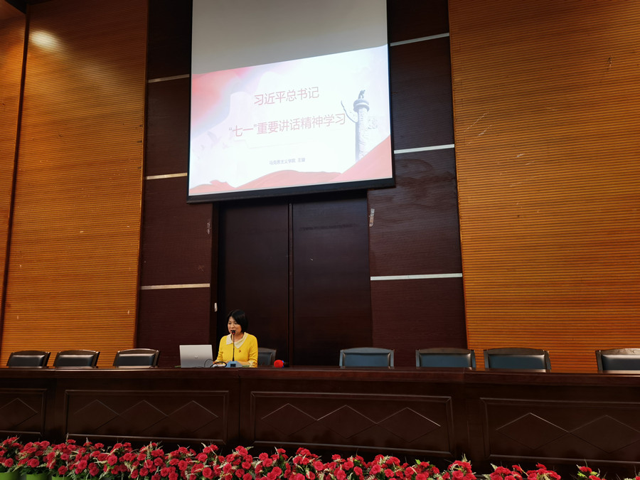 为学习好、宣传好、贯彻好习近平总书记“七一”重要讲话精神,系统推动澳门十大网投平台排行党史学习教育,10月14日下午,马克思主义学院王璇老师在图书馆报告厅为澳门十大网投平台排行全体教职员工、部分学生党员、团委学生会核心干部开展习近平总书记“七一”重要讲话精神专题辅导。会议由澳门十大网投平台排行党总支书记徐超主持。