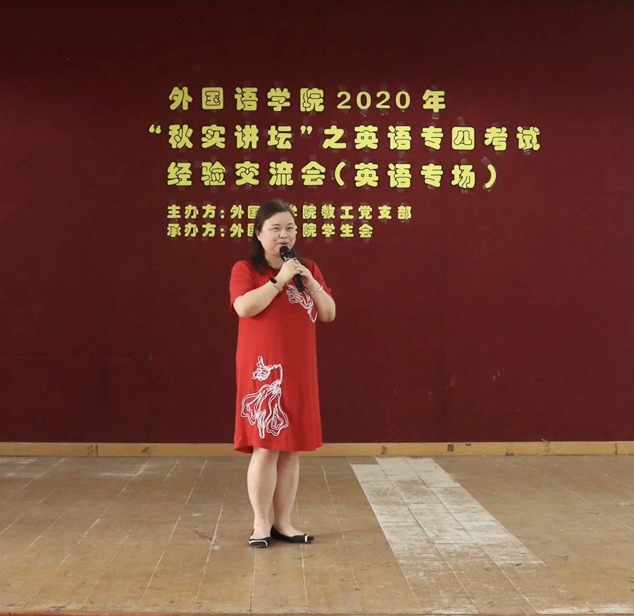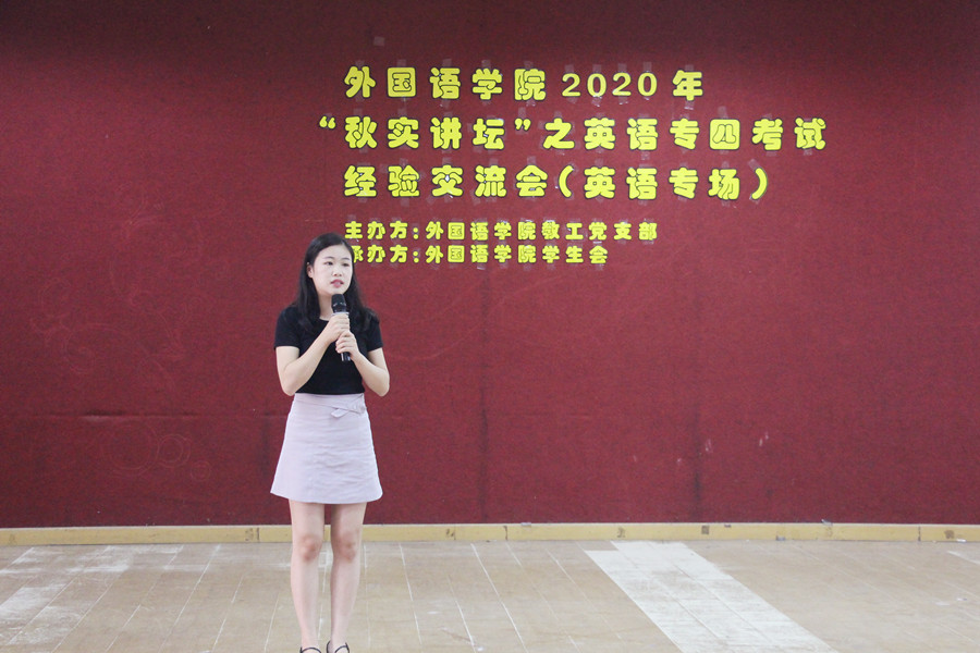 伍思颖作总结发言。她指出了专四考试的重要性和紧迫性,鼓励同学们积极备考,并且希望同学们能够借鉴老师和学生嘉宾的学习经验从现在开始就有有计划、有步骤、有策略地备考。