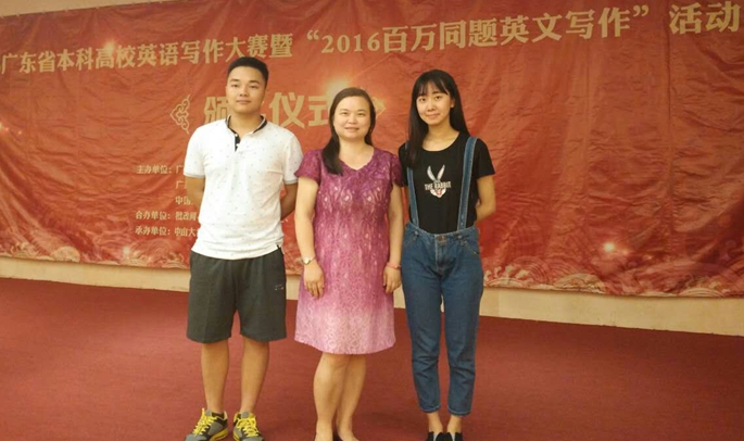6月26日,2016年广东省本科高校英语写作大赛暨2016年“百万同题英语写作活动”的决赛在中山大学举行。由姚丽芳老师指导的澳门十大网投平台排行吴茂莹同学获得了英语专业组三等奖,潘文晗老师指导的金融学院陆宇政同学获得了大学英语组三等奖。