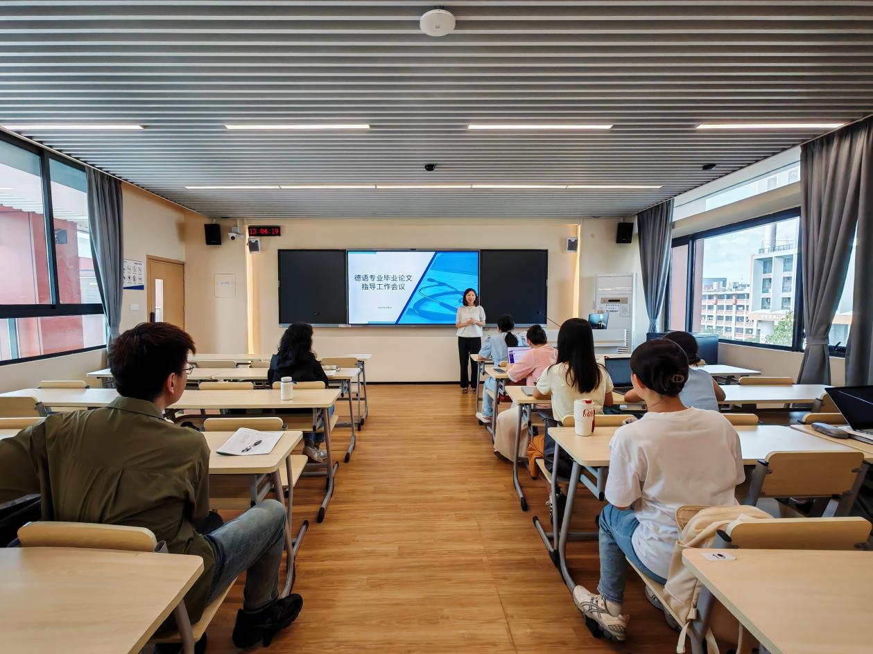 10月16日下午,德法系召开毕业论文指导工作专题会议,围绕本科毕业论文选题、指导流程、学术规范等关键环节展开深入研讨。会议由系主任周昳旸主持,专业负责人潘艳老师及德法系全体教师参加。此次会议旨在进一步规范毕业论文指导工作,提升论文质量,强化学生学术诚信意识,确保2026届毕业论文工作有序推进。