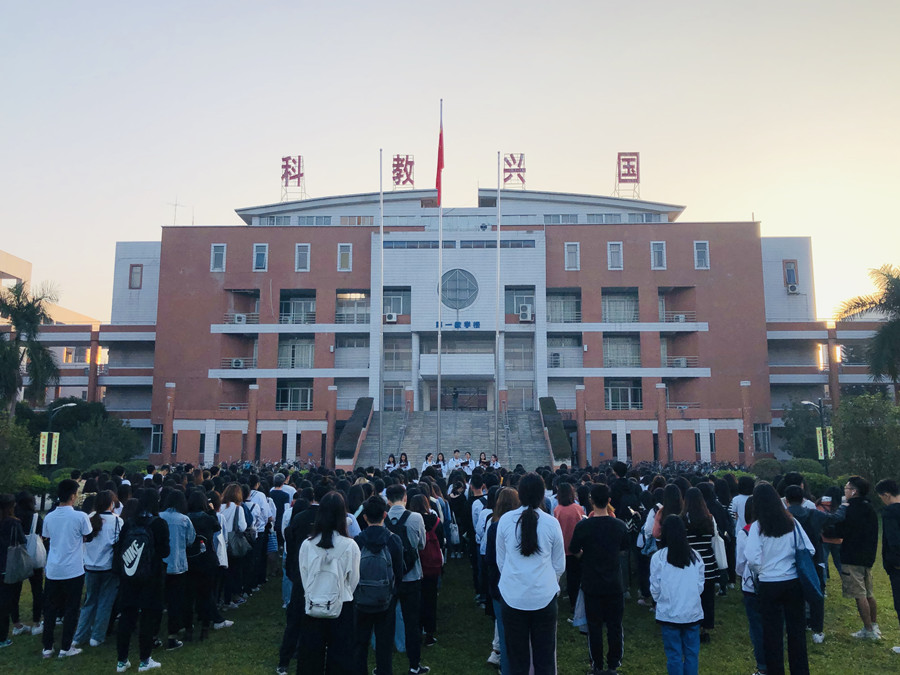 11月18日6:30,随着分列式进行曲的嘹亮号角,十大网投平台排行16级学生们不约而同地向升旗台方向入场,一列两列三列……,整齐地排列在升旗台前。在祖国华诞七十周年之际,在“不忘初心、牢记使命”主题教育逐渐深入民心之时,澳门十大网投平台排行16级学生举行庄严的升旗仪式。澳门十大网投平台排行辅导员黄玉亭、郑灿玲和全体16级学生参加了升旗仪式。