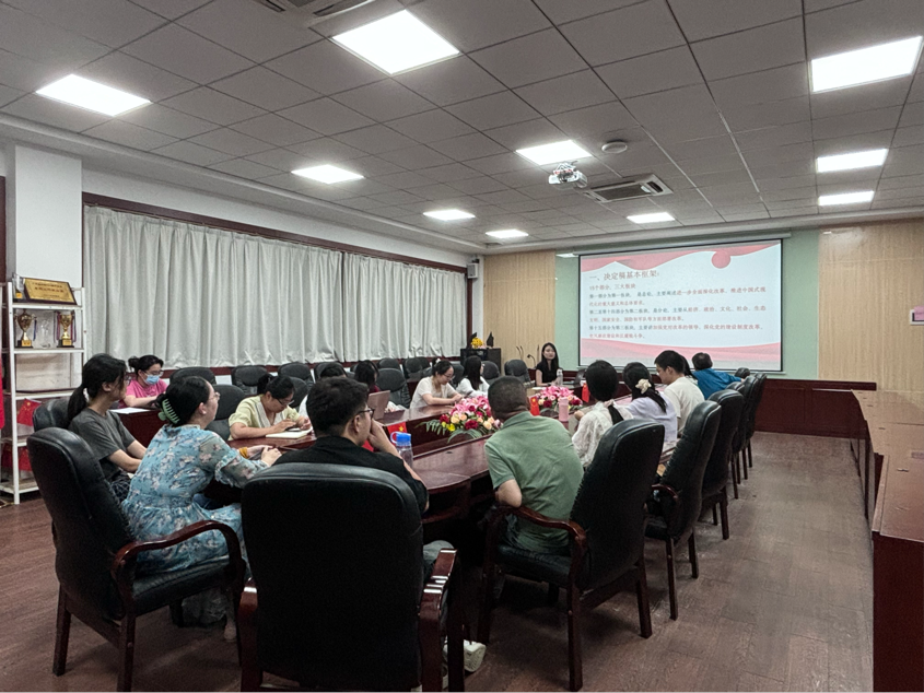 紧接着,朱渺详细介绍了党的二十届三中全会的基本情况以及会议通过的《中共中央关于进一步全面深化改革、推进中国式现代化的决定》的主要内容。朱渺从会议召开的背景意义、主要议程、核心成果三个方面进行了全面介绍,她指出,党的二十届三中全会是在我国迈上全面建设社会主义现代化国家新征程、向第二个百年奋斗目标进军的关键时刻召开的一次重要会议,为新时代新征程党和国家事业发展指明了方向。朱渺重点解读了会议提出的关于深化党和国家机构改革、加强党的全面领导、推进国家治理体系和治理能力现代化等方面的重大决策部署。她强调,这些决策部署是新时代坚持和发展中国特色社会主义的必然要求,是推进国家治理体系和治理能力现代化的重要举措。朱渺认为,作为高校党员教师,通过学习党的二十届三中全会精神,我们应充分认识到在新时代新征程中教育改革的重要性和紧迫性,激励我们更加坚定理想信念,将立德树人作为根本任务,不断学习新的教育理论,创新教学方法,以创新开放的态度对待教育工作,在实际工作中取得更多创新成果。