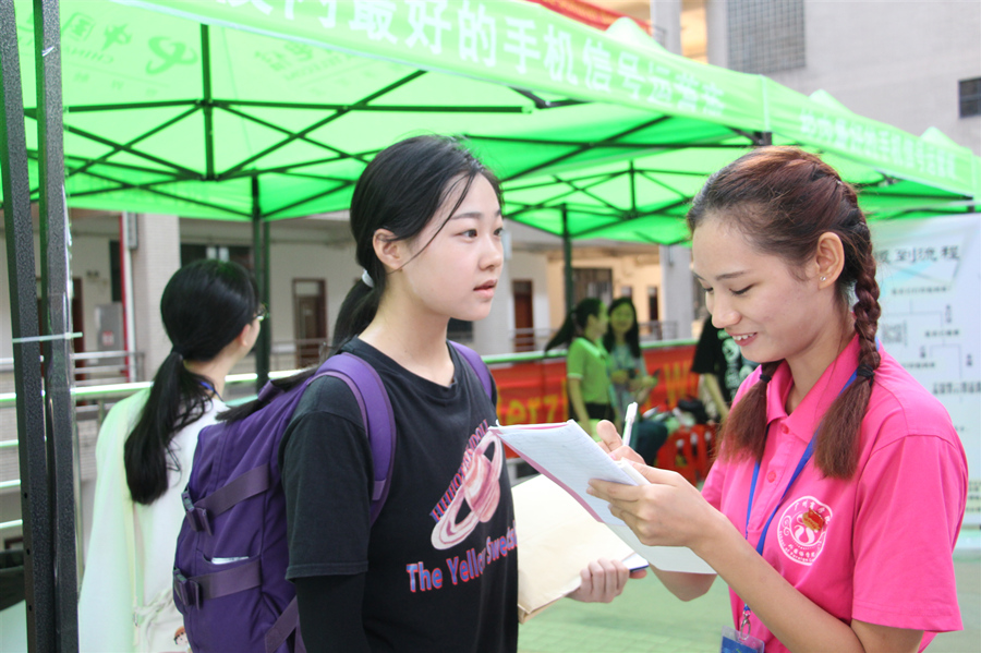 随后学校黄弢校长、党委吕泉荣书记、欧洁梅副校长、刘根正副校长、康大教育园区工会刘炳荣主席、后勤管理委员会黄耀明主任等亲临迎新第一现场了解学院迎新工作进展情况,对迎新现场布置给予肯定,尤其是对现场的合影留念墙与新生大礼包给予赞赏。值得一提的是澳门十大网投平台排行马蔚兰院长、党总支徐超书记以及各年级辅导员也亲自到一线指导,确保迎新工作圆满完成。