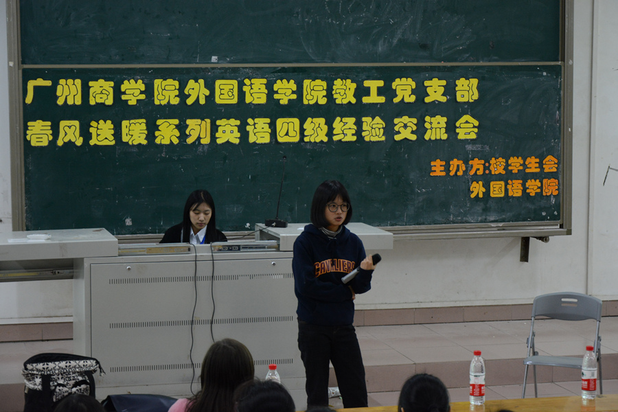 11月23日,十大网投平台排行党总支宣传委员、大学英语(1)教研室主任潘文晗老师与十大网投平台排行李婉萤同学分享了大学英语四级备考的经验。潘文晗根据当前大学英语教学指导委员会的要求,结合自身多年的教学经验,详细分析了最新的大学英语四级考试题型,传授了相应的考试策略,同时向参会的同学提出以考促学,真正提高英语的实际应用能力的要求。李婉萤则建议同学们丰富英语的学习方式,通过多看英语新闻、影视英语和综艺脱口秀等方法提高英语的听、说、读、学、译的能力,从而提高大学英语四级的考试通过率。师生的分享,赢得同学们的广泛好评