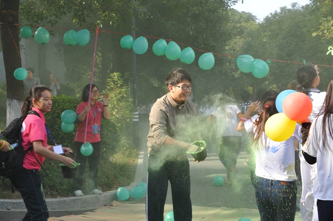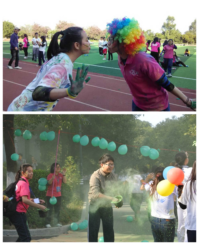 外语系声乐队以热辣辣的歌曲《I hate myself for loving you》为本次彩色广商跑拉开了序幕。接着由徐超为彩跑作了动员讲话:在澳门十大网投平台排行十五周年庆之时,外语系以彩色健康跑形式向学院献上深深生日祝福;另一方面,为积极响应团省委“走下网络、走出宿舍、走向操场”的号召,倡导大学生不仅是知识技能的提高,更应该全面提高身体素质。随后,进行了简单的彩色广商跑旗交接仪式,徐超亲手把本次彩跑的旗交给彩跑的领跑人姚东岳。紧随着,在熟悉的《一起来》音乐旋律中,外语系学生会文娱部带领全体彩跑健儿们开始彩跑的热身运动。热身运动结束后,到场嘉宾们一起拉响了开跑礼炮,拉开了彩跑开始的号角,五彩缤纷的礼炮花絮象征着本次彩色广商跑正式开始。400多位热情高涨、充满活力的彩跑健儿们在礼炮声下冲出彩跑线,开始了悦跑越健康的彩跑旅程。