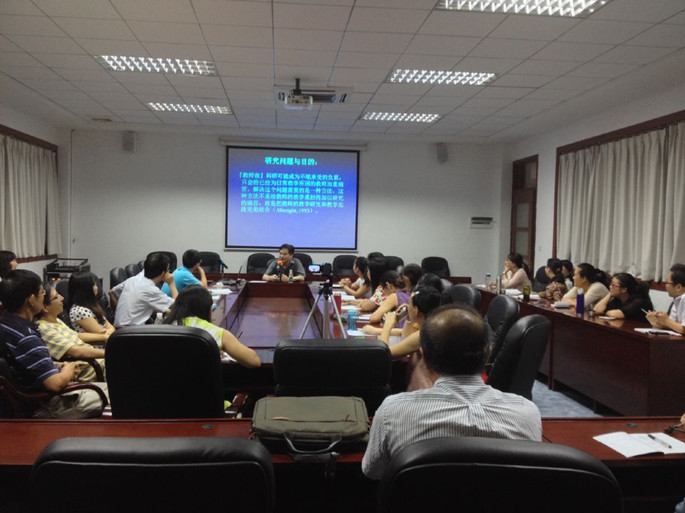 欧阳教授首先分析了目前流行的“教师发展”与传统的“教师培训”之间的不同,回顾国际教师教育背景和我国教师发展现状,指出了国内外做科研都是教师难以承受之重,为教学所困的教师加重痛苦,解决这个问题需要的是一种方法,发挥教师的优势,“把教师的教学研究和教学实践完美结合,用科研减轻教学工作量”。接着,欧阳教授以自己的经历和研究为例,详细分析了如何把教师日常“私下聊天”作为研究方法,一方面可以解决老师日常遇到的难题,另一方面创造自己的研究成果。欧阳教授的这种独特的研究视角大大地启发了在座的老师,使老师们懂得了如何在教学工作中以及日常生活中选取研究方法与材料,并使其上升到理论高度,教学研究与教学实践结合起来。