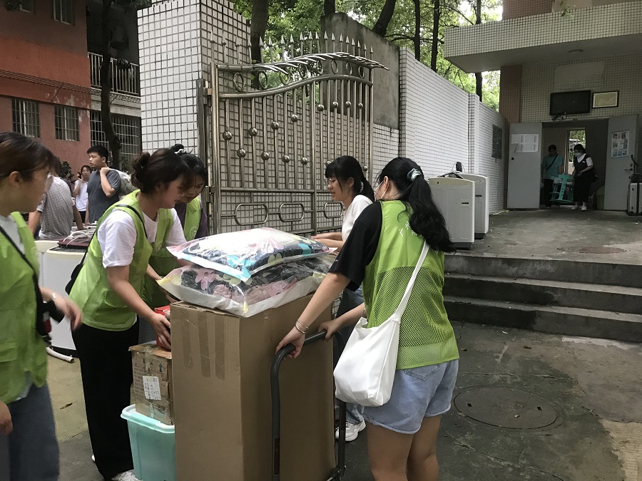 活动开始前,在蔡文蝶、樊丽梅和丁洁老师的组织下,15名入党积极分子有序集合,分配至毕业班宿舍进行协助打包行李、搬运行李等志愿服务工作。“师兄师姐,行李我来搬”,在志愿服务活动过程中,入党积极们用一身汗水诠释了为群众办实事的决心与信念。三个小时爱心搬运活动,积极分子们已经打包了数十件物品和搬运了数十件行李。活动结束之际,入党积极分子们仍然想为师兄师姐们做自己力所能及的事情。同时,入党积极分子们也圆满地完成了本次爱心搬运活动。