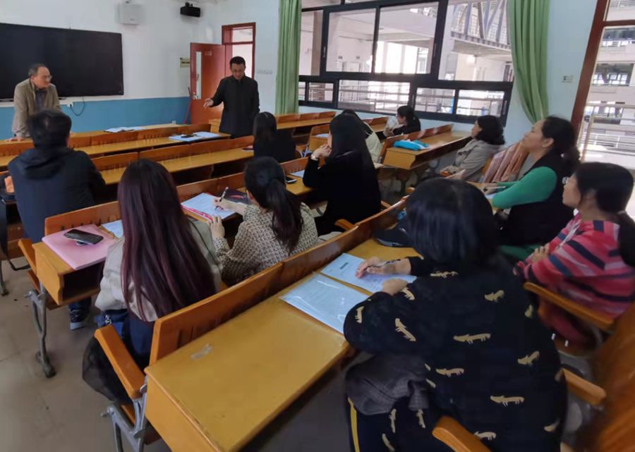 课后,参与观摩课的老师们在四教302课室进行了课程研讨,李望华老师主持了会议。李老师对本课程的教学过程、教学设计以及教学内容进行了回顾,与会的老师对授课过程中的优点进行了分析和点评,同时也对教学设计中存在的不足进行了总结及提出建议。老师们一致认为,高老师的英语水平较高,教学基本功扎实,备课充分,对教学内容熟悉,课程设计流畅完整、步骤清晰,具备一名高校英语老师的职业素养。同时也指出,授课过程中,可以稍微放慢语速,在内容上选择最重点的内容深入讲解,此外,先导入一些背景知识,可以让后续的教学更为顺畅。而且目前教授的对象是大一新生,应适当增加中文的讲解,以便学生更容易理解文本。最后,袁鑫副院长对本次课程进行了总结。他指出,课程应该围绕“学什么”和“如何学”,对于教材进行适当地调整,选取有针对性的教学方法组织教学,才能提高教学效果。