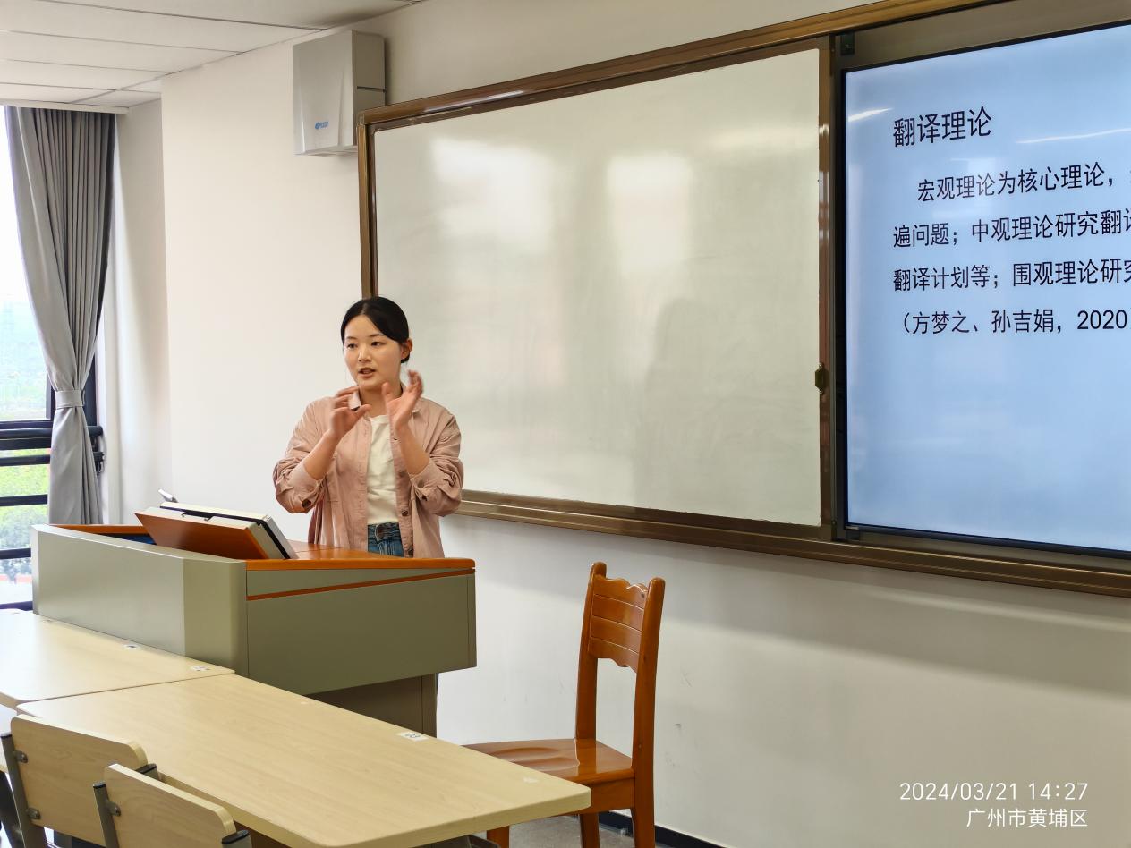 专任教师刘佳芮针对翻译理论中常见概念性错误进行报告