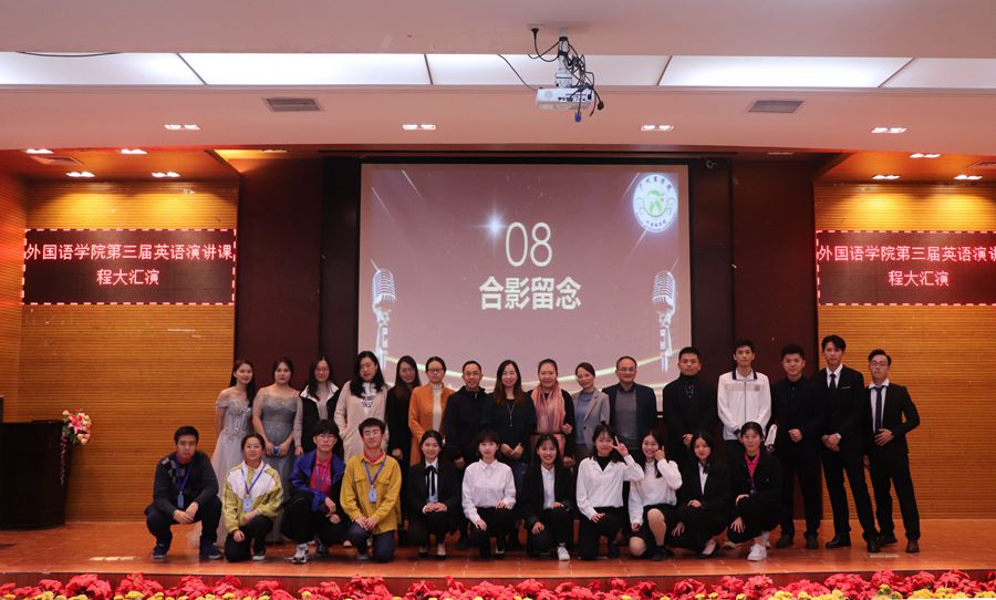 出席本次汇演的嘉宾和演讲选手及现场工作人员合影