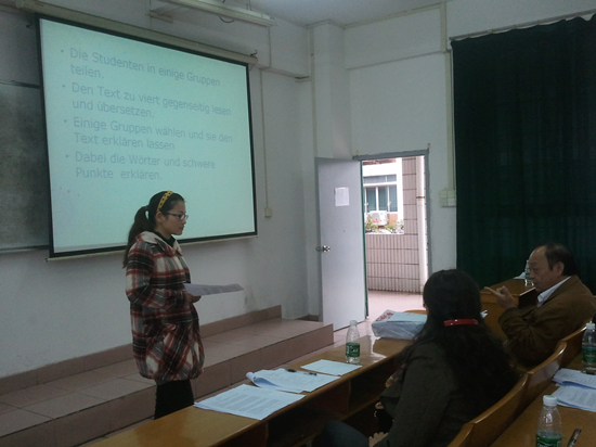 为推进十大网投平台排行外语教学改革,提高英语、日语和德语的教学水平,促进外语系新入职教师的成长,外语系于2012年11月30日下午开展了2012年度新入职教师教学比赛,本次比赛由各语种教授、副教授和教研室主任担任评委。外语系主任胡光忠观看了本次比赛。
