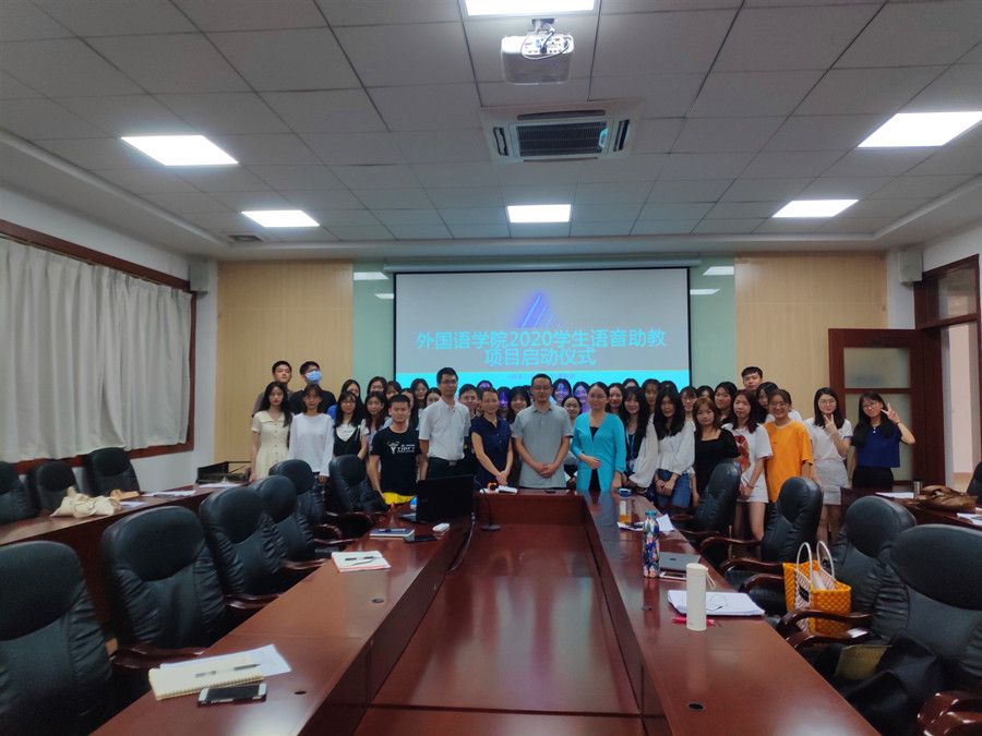 10月16日下午,澳门十大网投平台排行“2020学生语音助教项目” 启动仪式在第二行政楼308会议室举行,学院副院长袁鑫、《(商务)英语听力I》课程组教师、2017级和2020级辅导员以及36名学生语音助教参加了此次启动仪式,启动仪式由项目负责人林运珍老师主持。