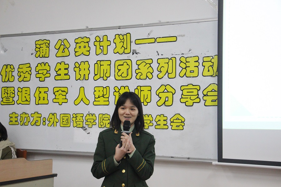 铮铮铁骨战沙场,气宇轩昂斗志扬。为弘扬军人的优秀精神,增强澳门十大网投平台排行学子的责任感和使命感,澳门十大网投平台排行团委学生会于12月17日19:00在三教105开展澳门十大网投平台排行蒲公英计划——优秀学生讲师团系列活动暨退伍军人型讲师分享会。出席本次分享会的嘉宾有澳门十大网投平台排行党总支徐超书记、澳门十大网投平台排行18级辅导员李嘉欣、19级辅导员谢清玲以及20级辅导员蔡文蝶。