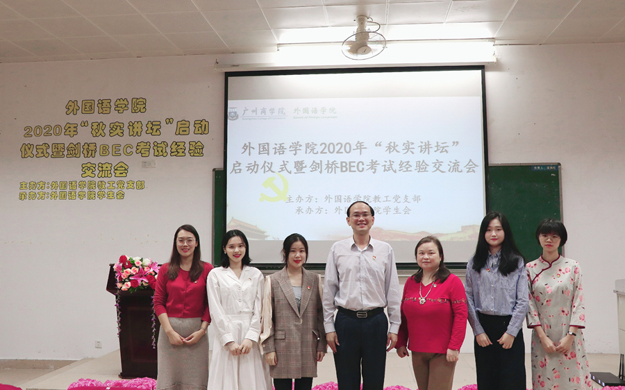 10月30日晚上七点半,2020年“秋实讲坛”启动仪式暨剑桥BEC考试经验分享会在第二报告厅隆重举行。本次活动由十大网投平台排行教工第一、第二党支部联合主办,校学生会、澳门十大网投平台排行学生会承办,学院党总支书记徐超、党总支宣传委员兼教工第二党支部书记潘文晗、教工第一党支部书记李海燕、学生会指导老师伍思颖、党员教师朱渺、梅之星、梁嘉铭以及200余名学生参加了本次活动。