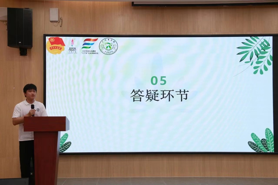 陈丽珊分享自己下乡时的经历,并表示希望各位队员们在下乡过程中能够注意个人安全、遵守团队纪律,在下乡期间锻炼自己的个人能力。蔡文蝶再次强调了活动期间的注意事项,希望大家能够以实干的精神来对待每一项工作,以有效的沟通来解决团队中的问题,以良好的态度展现阳光展翅实践团的精神风貌和以“争优”的动力开展2023年暑期“三下乡”社会实践活动。