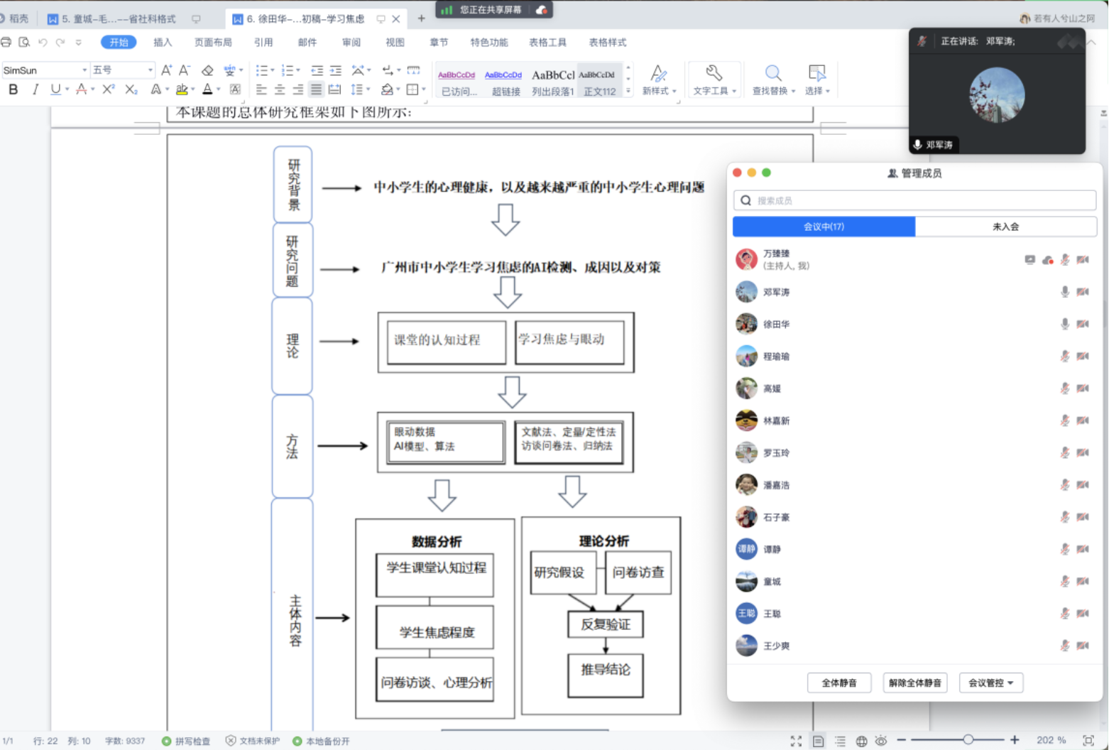 参与论证的教师会根据上一轮选题论证会专家组的意见,对申报书进行了修改和完善,并对研究方向修改部分做出了说明,专家组针对老师们的汇报,结合申报书的修改稿给予意见和建议。专家组指出,经过上一轮的选题论证,老师都做出了很大的努力,申报书的研究问题更加明确,逻辑结构更加清晰,文字表达上也有不小的进步。与会教师认真听取专家组的意见,并根据自身疑问与专家组进行深入交流。