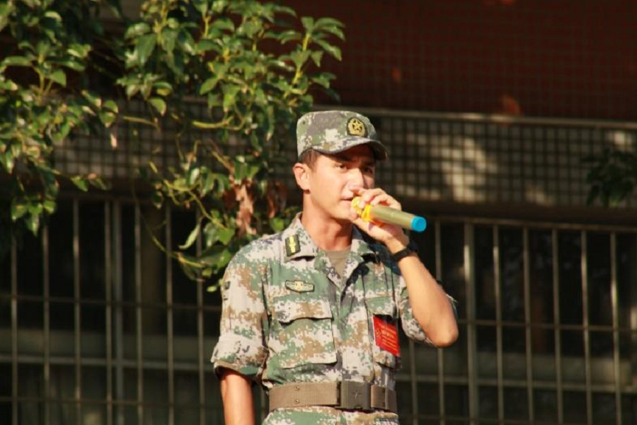 徐超进行动员讲话,他指出,军训是新生的一门必修课程,在必修课上同学们要发扬直面困难,勇于亮剑的挑战精神;不抛弃、不放弃的坚韧精神;见红旗就扛,见荣誉就争的进取精神。他希望全体参训同学都能继承和发扬中国人民解放军的优良传统;进一步增强组织纪律观念、强健体魄、磨练意志;锻造自强、自信、自立精神品质的四大成效。在此次军训中提高思想觉悟,圆满完成本次军训任务。教官团梁营长向新生们介绍并说明军训期间的各项要求。他希望各位同学在接下来的14天里,做到坚守保卫、服从命令、听从指挥。