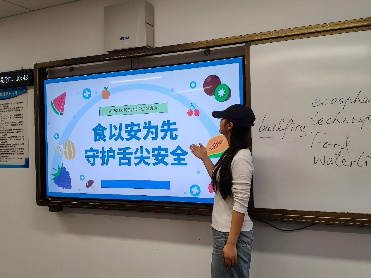 活动筹备阶段,团支书们主动担当责任,化身“安全宣传员”。他们通过查阅权威资料、收集热点案例等方式,系统梳理食品药品安全核心知识点,精心制作包含图文、视频、互动问答的PPT课件。部分团支书还结合校园生活实际,有针对性地筛选外卖安全、零食选购、常用药储存等贴近学生日常的内容,确保班会主题鲜明、重点突出,让安全知识真正走进学生生活。