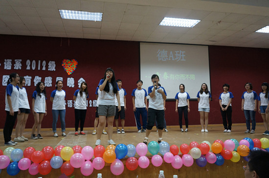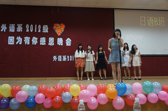 6月8日19:30,外语系2012级“因为有你”的感恩助理辅导员晚会在A206举行。出席本次活动的嘉宾有2012级辅导员黄玉亭、外语系日语老师邓亚晔、德语A班导师谢晓东、德语B班导师邓倩璐、商务英语A班导师毛文秀、涉外翻译A班导师张冰及09级日语A班吴雁、09级商务英语A班姚柳瑜等八位助理辅导员。