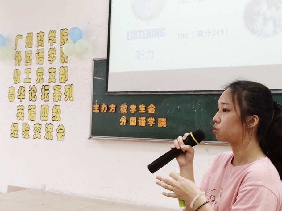 金融学院叶颖同学和十大网投平台排行伍诗曼同学作为大学英语四级考试成绩优秀代表,结合自身的英语学习中遇到的难题,分享了自己的学习心得,从听说读写四个方面提出了许多可借鉴、可复制的学习经验和可选择、可操作的备考建议。