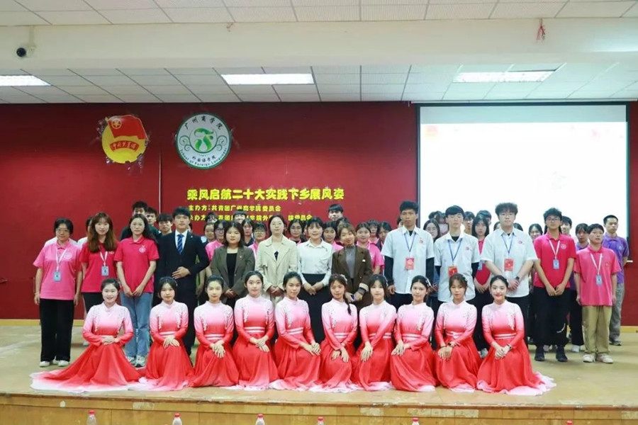 大会通过视频的形式向观众展现了外院学子在2022年暑期“三下乡”社会实践活动中的精彩风貌,他们满载志愿热情深入乡村,走进红色基地,服务基层群众,传播人文关怀,用实践向我们诠述了党的二十大精神。