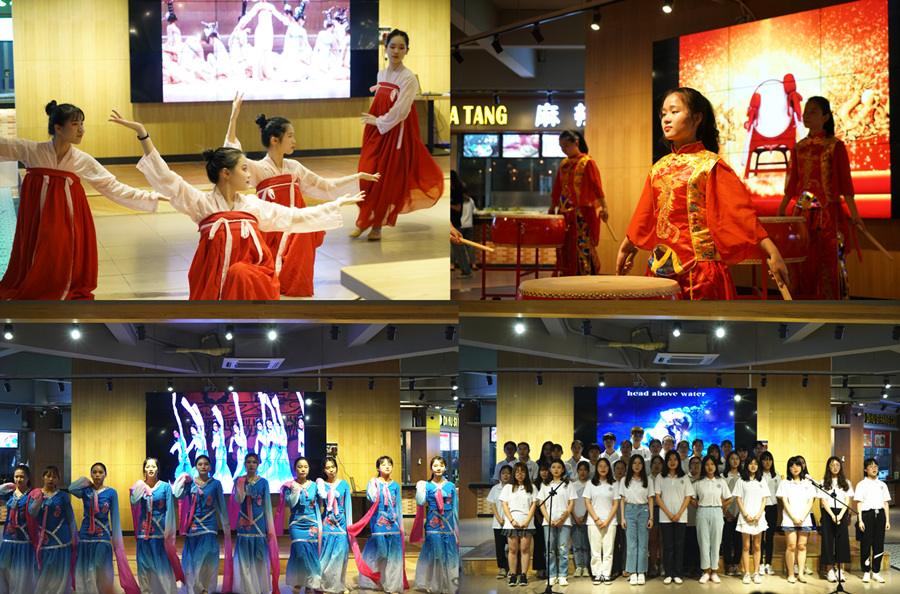气势恢宏的中国龙鼓,震耳欲聋的节奏,在外院学子的演练下尤见力与韵,动与静的交替,体现了青年一代为实现中华民族伟大复兴的铿锵决心。三月三日天气新,长安水边多丽人,一支《丽人行》秀出了杨氏兄妹曲江春游的情景。猛风沙,野茫茫,“射雕引弓塞外奔驰,笑傲此生无厌倦”,粤语合唱《铁血丹心》让在场的观众重温了金庸先生笔下的家国情怀。古典舞《山鬼》讲述了“山鬼”跟情人约定山间相会, 尽管道路艰难,但坚定内心的渴望与期盼,最后满怀期待地赶到。动感的旋律,张扬的个性,《Mack Daddy》与《Ei Ei》的年轻人用汗水和青春舞出了自己的激情本色。“帘外芭蕉惹骤雨,门环惹铜绿”,一曲《青花瓷》合唱为现场的观众勾勒除了一片烟雨江南。家难以舍弃,国更需守卫,《采薇》舞的演员们用舞姿表达了征战之苦、思乡之切及返乡的感伤。外文合唱《Head Above Water》启示青年一代人生充满机遇与挑战,下定决心敢于面对斗争,成就更加坚强的自己。鼓楼下,风声起,男子古典舞《书简》追求速度力量与古风柔美的结合,展现了男子清丽秀气,韵味别致的味道。最后,合唱团的指导洪泽轩与肖雨代表教练团的所有成员为在场的观众倾情献唱,庆祝本次汇演的圆满成功。