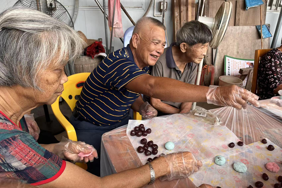 9月8日,澳门十大网投平台排行阳光展翅实践队在99公益日“爱在邻里,情暖人心”--龙湖街社区慈善基金募捐活动之凤凰湖社区专场中,在绿地缤纷城开展了“关爱老人不止步,暖心服务零距离”宣传摆摊活动。9月13日,阳光展翅实践队则前往五福堂安置区,与老人们共同制作冰皮月饼,增进彼此之间的感情,提高获得感和幸福感。