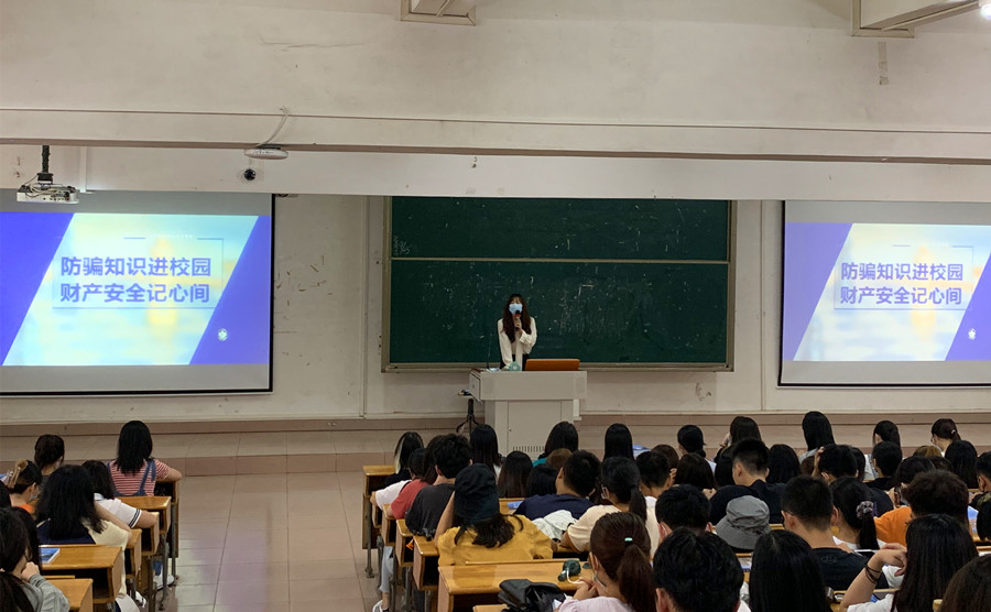 会议最后,19级英语专插本辅导员孙玉博针对大学生防诈骗问题进行科普教育,她提醒同学们要提高防骗意识,辨别诈骗套路,并引导全体同学关注“广州反诈服务号”公众号和下载“国家反诈中心”APP。