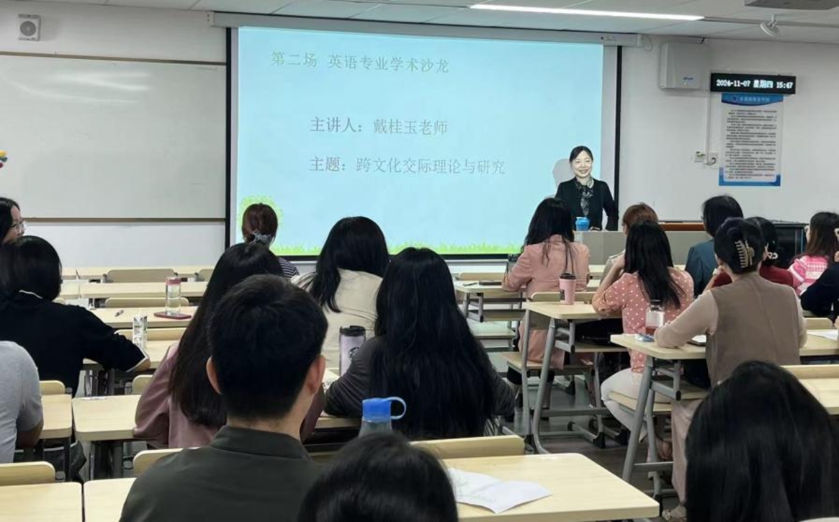 “跨文化交际理论与研究”学术沙龙中,戴桂玉以其深厚的学术功底和丰富的实践经验,深入浅出地介绍了跨文化交际的学科背景与研究现状。她系统梳理了文化适应理论、文化维度理论等跨文化领域的核心理论,并结合具体的研究选题案例进行了生动的讲解,为与会师生奉献了一场精彩的学术盛宴。