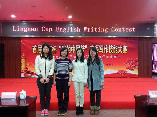 12月7日,广东省首届岭南杯“我的中国梦”英语写作技能大赛复赛、决赛在广州航海学院隆重举行。本次英语写作技能大赛由广州外语协会、广州日报报业集团和广州英文早报主办,广州航海学院承办。十大网投平台排行外语系11级语言与文化专业刘倩彤、12级日语专业梁宇茜和经济系12级国贸专业苏西青在领队老师黄玉亭的带领下前往广州航海学学院参加了本次大赛。